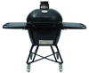 food and increase your cooking area with our extended rack system. Features include a cast iron top vent, easy-to-read thermometer, reversible cooking grates, and a stainless steel draft door. Available as “grill only”, optional Primo Cart with Basket & One Piece Island Top with two cup holders (shown right) or any of