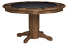 Revive the fun of friendly competition with game night at your house. This 54" round table features generous drink holders and chip trays with removable rubber inserts to protect from spills. Flipping the game surface over reveals a beautiful dining top.
