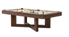• This Pool Table is masterfully crafted of solid Walnut and Acacia hardwoods, complimented by Walnut veneers and engineered wood